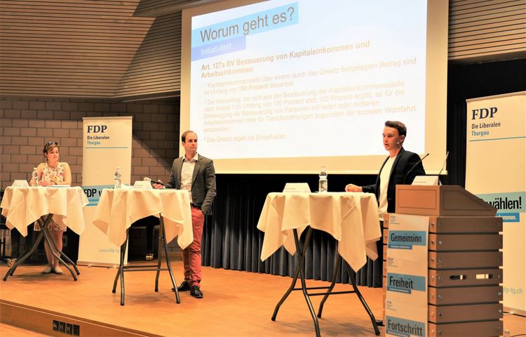 Unter der Leitung von Philipp Gemperle lieferten sich Mia Jenni, Geschäftsleitungsmitglied der JUSO Schweiz, und Ramon Weber, Präsident der Jungfreisinnigen Thurgau, einen regen Schlagabtausch. Das 2019 eingereichte Volksbegehren «Löhne entlasten, Kapital gerecht besteuern (99%-Initiative)» der Jungsozialisten verlangt, dass Kapitaleinkommen wie etwa Zinsen und Dividenden eineinhalbmal so stark wie Arbeitseinkommen besteuert werden. «Die Initiative erschwert Nachfolgeregelungen massiv und ist eine Gefährdung für Substanz und Stabilität», befürchtet Ramon Weber. «Wir müssen den Anstieg der sozialen Ungleichheit in der Schweiz stoppen», hielt Mia Jenni dagegen. Intensiv diskutiert wurde sowohl im Saal wie auch im digitalen Chat. Verschiedene Redner sahen diese Initiative als frontalen Angriff gegen KMU-Betriebe und befürchten schwerwiegende Folgen für Wirtschaft und Gesellschaft. «Wir haben ein System, das wir nicht durcheinanderbringen sollten», meinte etwa Andrea Roth, Präsident der Arbeitgebervereinigung Region Romanshorn und CEO eines im Familienbesitz stehenden Traditionsunternehmens. «Um weiterhin nachhaltige Arbeitsplätze anbieten zu können, sind wir auf Unternehmerinnen und Unternehmer angewiesen, die bereit sind, Kapital dafür zur Verfügung zu stellen». Die Nein-Parole für die am 26. September 2021 zur Abstimmung kommende 99%-Initiative fiel mit 58:1 Stimmen sehr deutlich aus. Einstimmig genehmigten die Mitglieder die von Kassier Christoph Aeschbacher präsentierte Jahresrechnung 2020 mit einem Gewinn von rund 900 Franken.