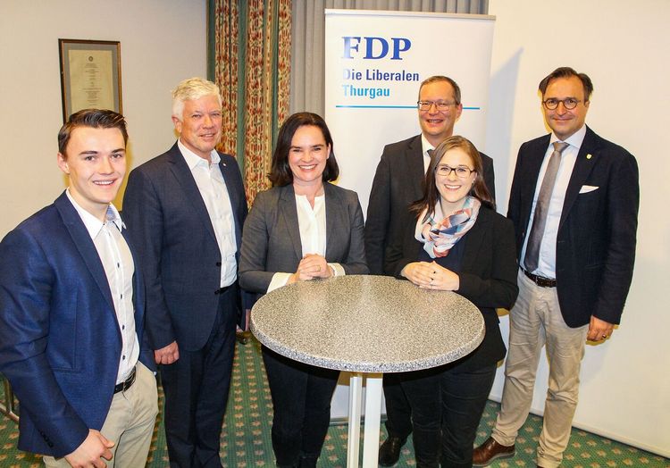 Das von Kantonsrätin Kristiane Vietze vorgestellte Steuerpaket, welches für einen attraktiven Thurgau steht und gleichermassen Arbeitsplätze sichert und Familien entlastet, erhielt nahezu die einstimmige Zustimmung. Etwas weniger deutlich sprachen sich die Thurgauer Freisinnigen für die «Änderung des Strafgesetzbuches und des Militärstrafgesetzes» (Diskriminierung und Aufruf zu Hass aufgrund der sexuellen Orientierung) aus. Dies nachdem sie von Primarlehrerin und Militärrichterin Sibylle Moopanar die vorgesehenen Änderungen erklärt bekamen. «Mehr Schutz vor Diskriminierung, garantierte Meinungsäusserungsfreiheit und fundamental für die Gesellschaft», hob Sibylle Moopanar die Pro-Argumente hervor. Gegen die von Attila Wohlrab, eidg. dipl. Immobilientreuhänder, erläuterte Volksinitiative «Mehr bezahlbare Wohnungen» fassten die 83 anwesenden Mitglieder einstimmig die Nein-Parole. Der Staat dürfe nicht zum Immobilienspekulant mit Steuergeldern werden, argumentierte Attila Wohlrab unter anderem. Parteipräsident David H. Bon informierte aus der Parteileitung und freute sich, dass bei den Kantonsratswahlen 119 topqualifizierte und hochmotivierte Persönlichkeiten kandidieren: «Sie decken alle Alters- und Berufsgruppen sowie die urbanen und ländlichen Räume ab.» Ihnen und den Kandidierenden für die Richterwahlen dankte der Parteipräsident speziell für ihr Engagement. Daniel Borner, Mitglied der Parteileitung und Finanzverantwortlicher, präsentierte für 2020 ein praktisch ausgeglichenes Budget. Schliesslich erläuterte Ramon Weber, Vizepräsident der Jungfreisinnigen, die von den Jungfreisinnigen lancierte Renteninitiative, welche das Sorgenthema Nummer eins der Schweizer Bevölkerung ernst nimmt und die Renten nachhaltig sichern will.